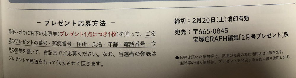初めて宝塚graphの雑誌のプレゼント応募をしようと思っているので Yahoo 知恵袋